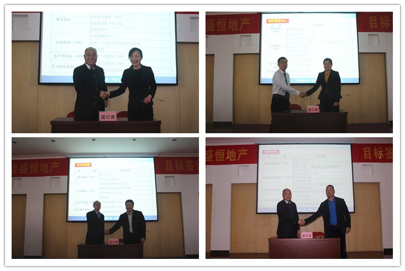 首先,由公司班子成員代表公司和各部門負(fù)責(zé)人簽訂年度目標(biāo)責(zé)任書,其次由地產(chǎn)公司副總經(jīng)理班磊代表地產(chǎn)公司與各分子公司簽訂年度目標(biāo)責(zé)任書,最后是各分子公司負(fù)責(zé)人與其各項(xiàng)目負(fù)責(zé)人簽訂年度目標(biāo)責(zé)任書,整個簽訂儀式在莊嚴(yán)而緊張的氣氛中進(jìn)行。