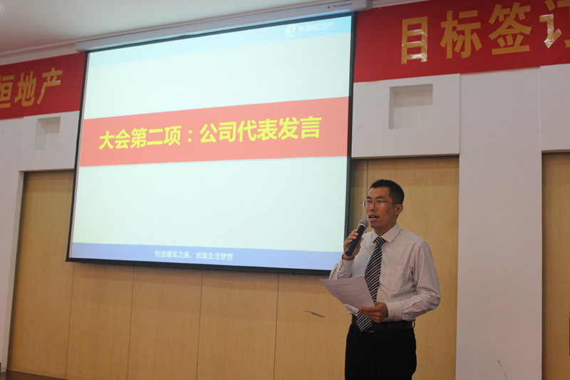 簽訂儀式結(jié)束后,公司副總經(jīng)理伏勝濤代表地產(chǎn)公司,物業(yè)公司副總經(jīng)理李晶晶代表各分子公司分別進(jìn)行了發(fā)言及表態(tài),不僅僅是對目標(biāo)和責(zé)任的承擔(dān),更是信心和決心的傳遞,并承諾將圓滿完成2016年公司的各項(xiàng)經(jīng)營指標(biāo)。